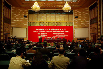 中国气象局局长郑国光首先致开幕词。他表示,应对气候变化事关人类生存和各国发展,是全世界共同面临的严峻挑战。此次研讨会聚集了中美两国能源与气候变化领域的高层专家,相信通过双方代表的深入交流与对话,必将对推动两国政府合作应对气候变化起到积极作用。