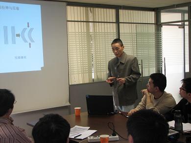 曹教授介绍了其在纳米材料的性能和组装领域的最新进展:1)碳纳米管在压缩时的力学行为;和2)用吹泡法大规模有序组装一维纳米材料。研究发现,碳纳米管在受到轴向压缩时局部会产生变形和弯折,并且像弹簧一样能够被反复压实(施加应力时)和弹回原来的形状(撤销应力时),表现出高强度和高柔韧性等优异的力学性能。最近开发的有机物吹泡法可以大面积组装多种一维纳米材料,具有方向性好、密度可调节等特点,并且有与工业方法接轨进行大规模生产的前景。基于绿色有机物的环保方法也正在研究之中。在场老师和同学的对曹教授的报告表现出了非常浓厚的兴趣,纷纷提问。曹教授一一给予解答,并表示希望和大家对这一问题进行共同的探讨。