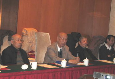 (从左到右)张涵信院士,庄逢甘院士,黄琳">黄琳院士,孙茂教授。图为庄先生正在讲话。