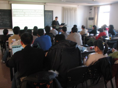 11月28日下午3点清华大学工程力学系郑泉水教授在william威廉中文官网做了题为“微纳米力学若干问题的研究”的报告。报告由william威廉中文官网副经理苏先樾">苏先樾教授主持。郑泉水教授介绍了微纳米力学研究中的若干基本问题。围绕着他的研究小组在范德华滑移型为原理的理论与实验工作、新一代微纳米器件的研究、表面微纳结构与浸润和输运性质研究、气候环境对植物生长极限的细胞力学研究等方面进行了详细的讲解。在场的师生就报告内容进行了热烈的交流。