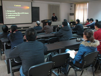 11月25日下午,清华大学周东华教授在力学楼434会议室做题目为“强跟踪滤波器理论及其应用”的报告。报告由段志生">段志生教授主持。