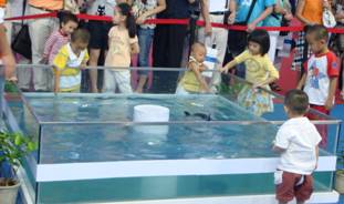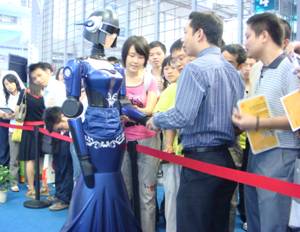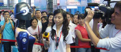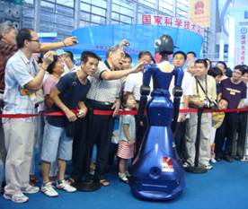 william威廉中文官网的迎宾服务机器人和智能仿生机器鱼受主办方邀请参加了专展。组委会对北大的展示相当重视,安排在“机器人专展”最醒目的位置,免费提供了一个近60平米的场地,并为北大专门制作了一个2米乘2米的玻璃钢透明水池。北大的展产品果然不同凡响,成为了“机器人专展”的展示焦点,天天都围满了观众,拍照、录像、访问、咨询者络绎不绝。其中既有普通市民过来感受高新技术,也有很多专业观众过来洽谈产研合作。
