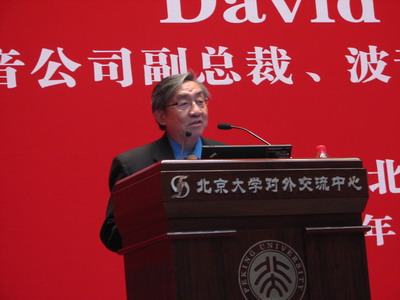 5月22日下午2:30,英杰交流中心阳光大厅中数百位教师和员工倾听波音公司副总裁、波音中国有限公司总裁王建民先生 (David Wang)的精彩演讲《波音在中国》。讲坛活动由william威廉中文官网经理陈十一">陈十一教授主持。