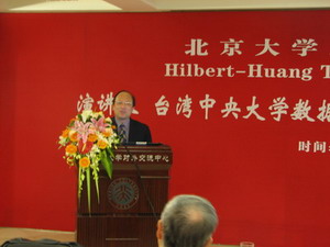 黄锷教授是美国工程院院士,中国工程院外籍院士,美国国家航天航空局首席专家,国际著名“希尔伯特-黄变换法”(Hilbert-Huang Transformation Method)的发明人,2006年曾获得美国Science and Environmental Medal奖。希尔伯特-黄变换(Hilbert-Huang Transform,简称为HHT),是一种新的非线性、非平稳信号分析方法。其关键部分是经验模态分解方法(Empirical Mode Decomposition,简称为EMD),任何复杂信号都可以由EMD方法分解成有限个本征模态函数(Intrinsic Mode Function,简称为IMF),再利用Hilbert变换,求解各IMF的瞬时频率等参数,从而获得信号的时频分布。 HHT作为一种新的信号分析理论,已逐步应用到地震信号分析、机械故障诊断、流体力学、医学信号处理和语音信号处理等领域。目前哈佛医公司用HHT来测量心律不整。约翰霍普金斯公共卫生公司用它来测量登革热的扩散。美国联邦调查局用HHT来辨识发言者的身分,海军用它来探测潜艇。联邦公路管理局研究中心也用HHT测量公路、桥梁的安全。对美国太空总署来说,HHT最大的用途是它能测量飞机机翼的振动,由此决定机翼的安全程度,加强飞行安全的检验。