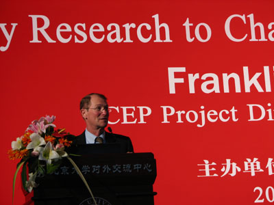 现今大气中的温室效应气体浓度比过去65万年中任何时间都高出三分之一,如果不采取措施降低能源消耗和排放,浓度还会升高更多。此次讲座向听众们介绍了斯坦福大学和世界其他学术机构正在进行的关于降低排放的研究项目及其理论基础。该研究项目涉及面广,包括生物能源转化、高级燃烧、碳捕捉及储存等。Franklin M. Orr教授用实例介绍了研究项目,详细探讨了二氧化碳的地质学储存方式。