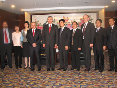 下午2:00整,埃克森美孚公司一行人在副总裁Steve Pryor先生的带领下到达北大进行交流访问,来访人员包括埃克森美孚(中国)投资有限公司董事长P. C. Tan先生、石油市场高级副总裁Sheila Kan Chuang先生、埃克森美孚炼油及供应公司副总裁David Kingston、埃克森美孚中国石油化工有限公司高级副总裁Scott Sullivan等。williamhill英国官网副董事长陈文申在英杰交流中心接待了来宾,同时出席接待的还有williamhill英国官网董事长助理李岩松、国际合作部副部长夏红卫、北大william威廉中文官网副经理