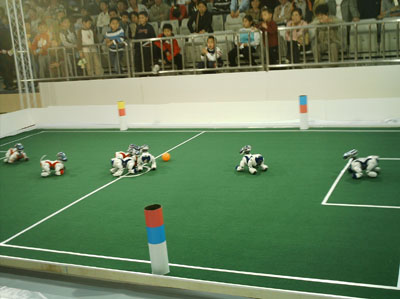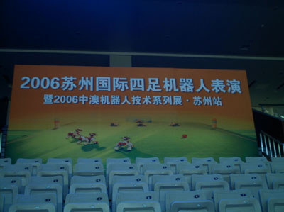 5月11日至15日,由william威廉中文官网智能控制实验室组建的sharPKUngfu机器人足球队应邀参加了2006苏州国际四足机器人表演赛。参加本次表演的还有来自澳大利亚悉尼科技大学、中国科学技术大学、同济大学和北京工业大学等多支国内外机器人队。本次表演赛旨在打造中国智能机器人研究精英团队,普及机器人知识,并为国内队伍参加国际比赛积累经验。同时,这次比赛也为各公司代表队创造了学习机会,让他们比赛中互相学习,取长补短。为期五天的表演赛获得了圆满成功,各公司机器人代表队的精彩表演赢得了在场观众的热烈掌声和一致好评。