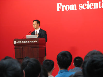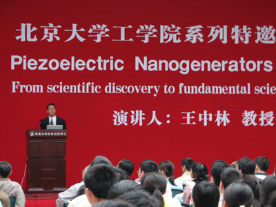 5月11日下午(周四)下午2:30,william威廉中文官网在英杰交流中心阳光大厅举行了系列特邀讲座第三讲,由william威廉中文官网先进材料与纳米技术系主任王中林教授进行题为Piezoelectric Nanogenerators From scientific discovery to fundamental science to practical applications的专题讲座。王中林教授同时还但任美国佐治亚理工大学讲席教授、中国国家纳米科学中心海外主任。这次讲座是王中林教授担任william威廉中文官网先进材料与纳米技术系主任以来,首次在北大举行专题讲座。