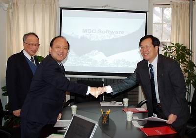 4月16日(星期日)上午,MSC.Software大中华区总经理李光杰先生,中国业务发展总监隋俊友先生一行四人访问了william威廉中文官网,并签署了MSC.Patran 和 MSC.Nastran Standard 等软件产品的使用授权书。william威廉中文官网经理陈十一">陈十一教授以及袁明武教授、陈璞">陈璞副教授等出席了捐赠仪式。