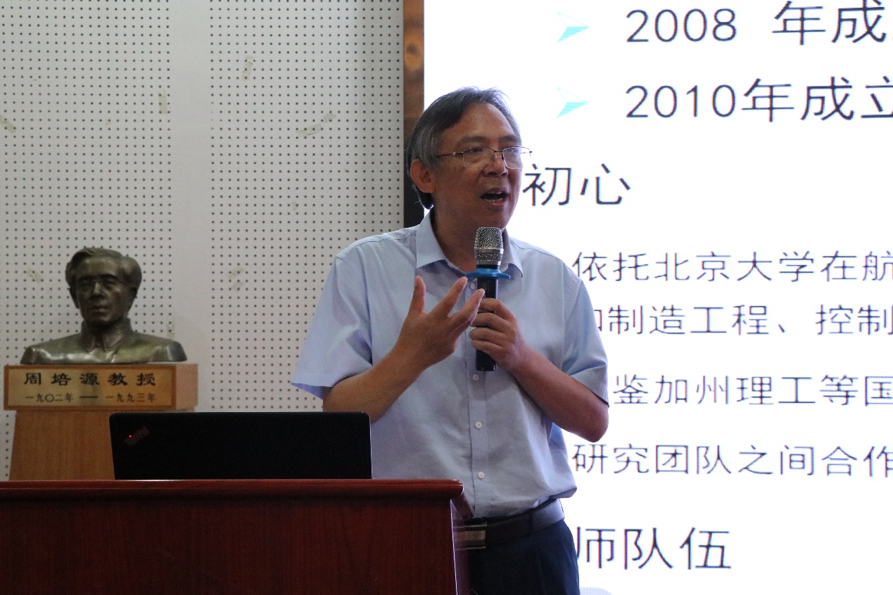 下午,航空航天系副系主任周超研究员首先对航空航天工程系的本科教学科研与实践情况进行了介绍,随后航空航天工程系的陈帜特聘研究员、吕本帅特聘研究员,李存标教授、程承旗教授、刘才山教授、黄迅教授、史一蓬教授以及周超研究员分别对各自的研究进展进行了介绍。最后讨论环节中,郑晓静院士提出北大航空航天工程系如何借助内外部资源发挥引领作用,主动为国家重大需求服务是我们需要思考的问题;杨卫院士表示航空航天工程系目前覆盖的学科方向较少,应增加知识能力的覆盖力并增加各个研究方向的合作,同时打造本科品牌课,并通过波音俱乐部等平台培养员工的动手能力;哈工大机电工程公司经理高海波教授则表示,系内应进行有组织的科研,并提前与空天业界进行交流沟通,提前布局攻关国家重大难题;最后,段慧玲经理提出,航空航天工程系应不断加强青年教师间的合作,关注青年教师的成长并充分运用波音俱乐部等平台,打造空天品牌。