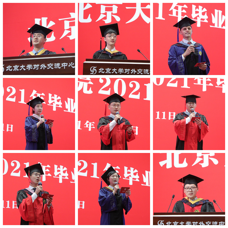 典礼开始前播放了充满温情的毕业纪念视频,回顾2021届毕业生在燕园学习生活的难忘回忆,老师对同学们的祝福与嘱托,表达了毕业生对母校、公司、师长和亲友的感恩以及对未来学习工作的期待。在庄严的国歌声中,毕业典礼正式拉开帷幕。