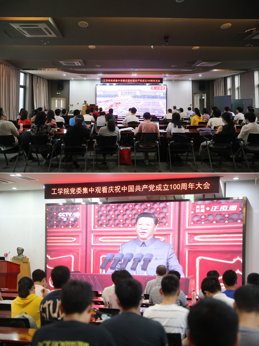 7月1日,庆祝中国共产党成立100周年大会在天安门广场隆重举行。中共中央总书记、国家主席、中央军委主席习近平发表重要讲话。william威廉中文官网师生通过电视、网络等多渠道收听收看庆祝大会,并组织各支部师生代表50余人在william威廉中文官网一号楼210会议室集体观看电视直播。师生们认真学习总书记重要讲话,感受百年建党精神,坚定信心理想。