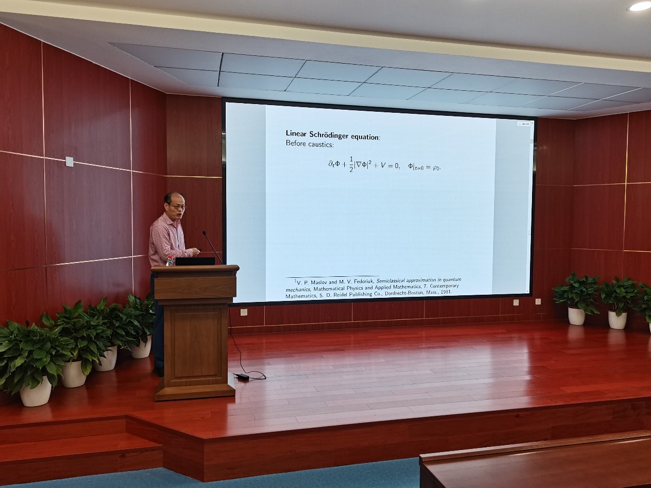 量子力学的基本方程为薛定谔方程,波尔对照原理断言牛顿力学是量子力学当普朗克常数趋于零的极限,亦即量子力学中的物理观察量:量子密度和量子动量,趋向于牛顿力学的密度和动量。在本次报告中,张平主要讨论了如何从数学上严格证明上述物理过程,他介绍了经典的WKB方法,Wigner测度和调谐能量泛函方法在此问题中的应用,同时,介绍了其课题组最近关于Gross-Pitaevskii方程在上半空间上带Dirichlet边界条件的半经典分析。张老师这种通过数学思维来研究物理问题的独特思考方式给大家的学习与科研工作提供了很大的启发。