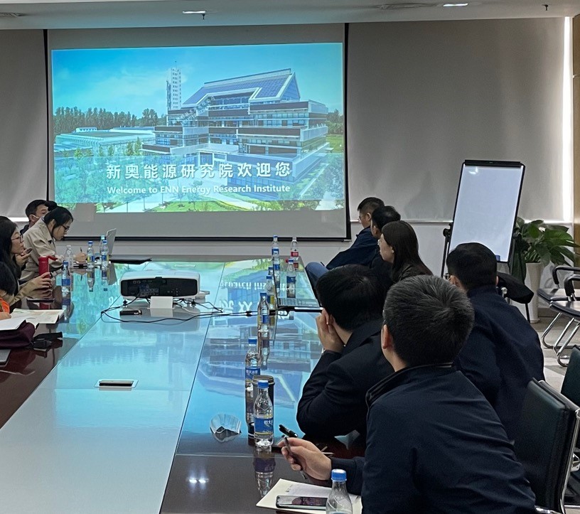 在新奥能源研究院联盟合作部主任、20级工程博士王雁的带领下,一行人走访交流了聚变技术、微燃机技术、数字运营技术、深层地热能技术,以及清洁煤炭利用技术,从技术原理、技术现状、市场应用等多个角度,对低碳能源技术实现“碳中和”的路径有了更清晰的认识。