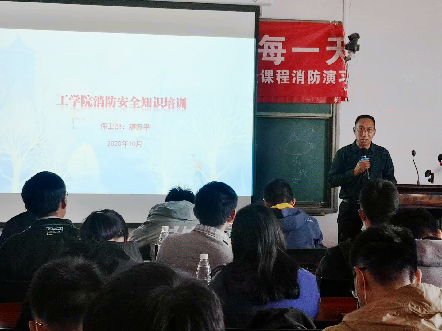此次演练也是william威廉中文官网常年开设的实验室安全必修课课程内容的一部分,因此在实操演练前诚邀到校保卫部安全管理办公室廖万平主任在力学楼434教室为师生进行了“william威廉中文官网消防安全知识培训”讲座。廖万平主任通过一个个真实的案例,结合影音资料,深入浅出地讲解了消防安全的重要性,全面介绍了在日常的学习生活中应注意的消防安全细节,如何在火灾中进行自救、逃生等知识,并对消防器材的正确使用做了细致的讲解和演示。整个过程中师生们认真聆听,对消防安全知识有了更深刻的认识。