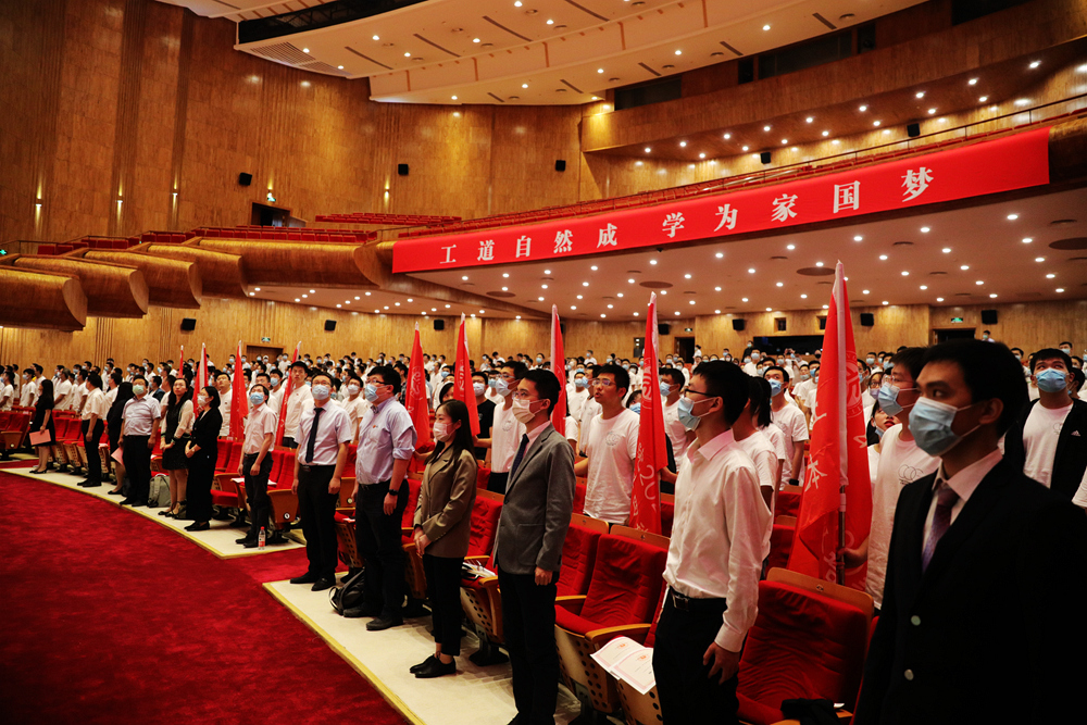 典礼最后,为彰显和增强工学人集体的凝聚力和自豪感,孙智利、张婧、宋洁分别向本科、学术型研究生和专业型研究生新生班级授予班旗。在全场齐唱《燕园情》的激昂歌声中,同学们在燕园的新旅程正式拉开帷幕。