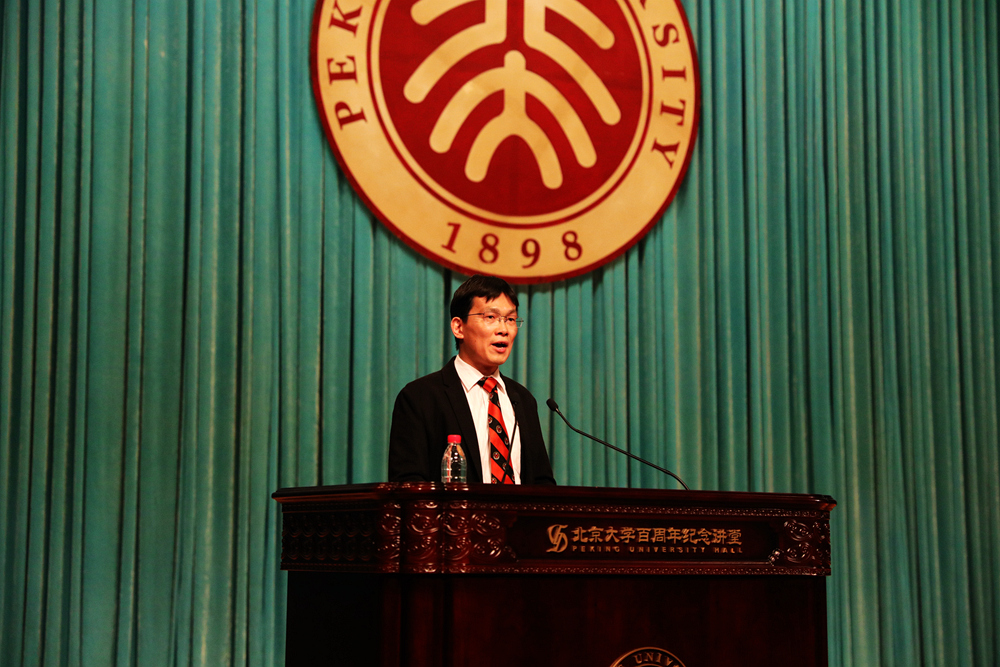 能源与资源工程系2009届本科、2015届博士毕业生陈林在院友代表致辞中与同学们分享了自己的北大生活心得,展望工科的远大前景。他从北大早自习的例子入手,寄语同学们保持热情、规划长远,在今后学习中培养全面能力并掌握时间管理能力这一“杀手锏”,同时要“忘掉过去”,敢于挑战未知。