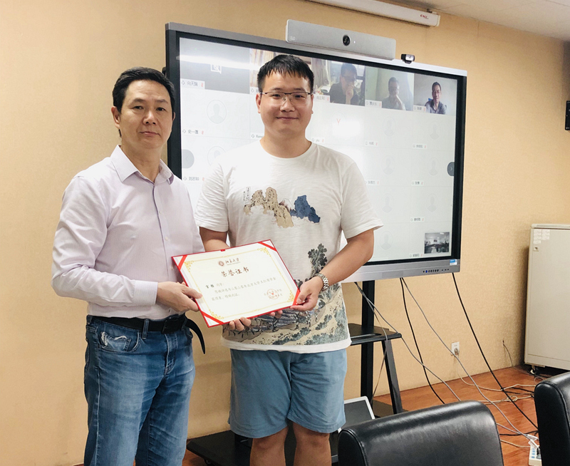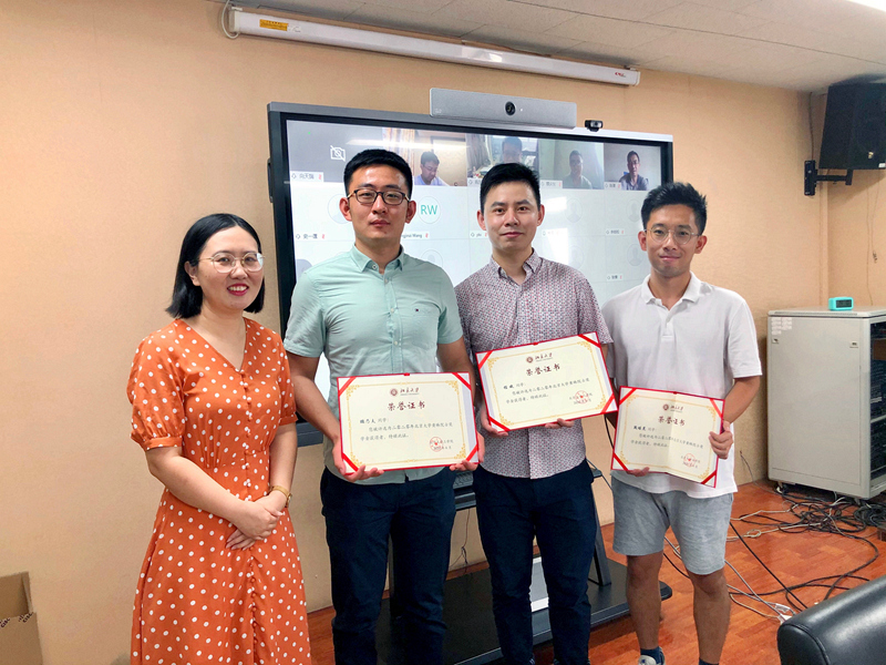 随后,王建祥教授、陈正副经理、张婧副书记分别为王仁奖学金获得者宦强同学、周光坰奖学金获得者赵雨浓同学、黄琳院士奖学金获得者程斌、段培虎、鹏乃夫(段培虎同学因未返校无法出席颁奖仪式,由其他同学代领)颁奖,五位同学均为2020届博士毕业生,在各自研究学习领域都取得了优异成绩。