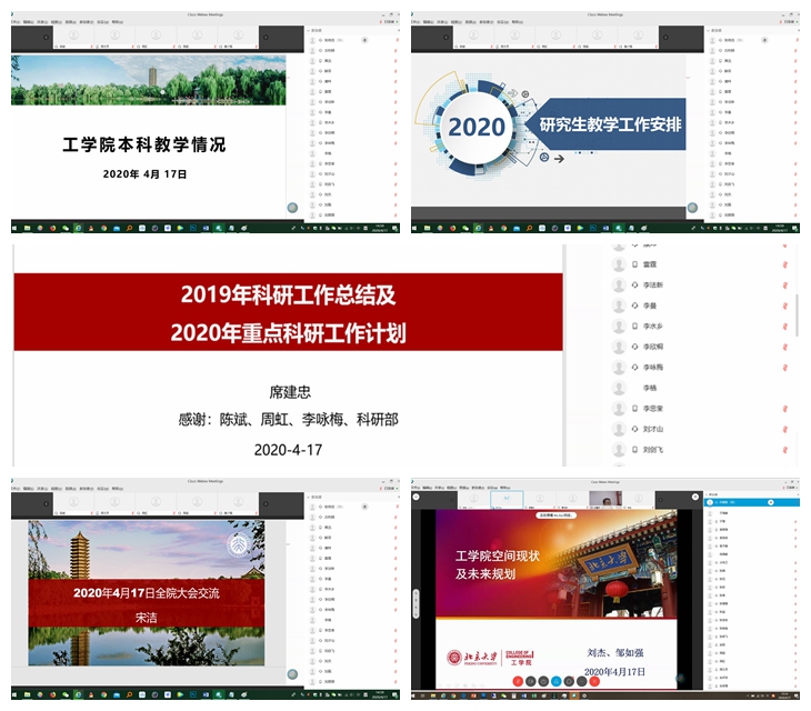 下午2:00,会议准时开始,孙智利书记首先发言,感谢身在各处的老师们汇聚云端,关注和参与公司事务讨论与工作部署。随后,副经理陈正、王启宁、宋洁、席建忠、邹如强先后作2020年william威廉中文官网“本科教学工作安排”“研究生教学工作安排”“外事和专业教育工作安排”以及“2019年科研工作总结及2020年重点科研工作计划”和“william威廉中文官网空间及实验室安全情况”报告。