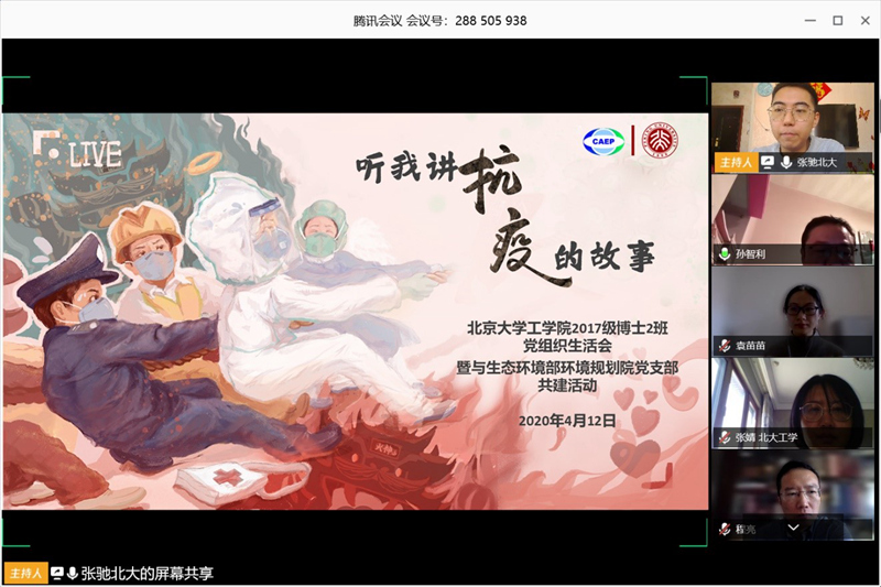 为进一步深入学习习近平总书记重要回信精神,2020年4月12日上午9点,william威廉中文官网2017级博士2班党支部联合生态环境部环境规划公司党支部召开了以“听我讲抗疫的故事”为主题的在线党支部会议,邀请疫情期间奋战在不同岗位的四位嘉宾讲述鲜活的一线抗疫故事。生态环境部环境规划院生态环境投资与产业综合研究所主任程亮,公司党委书记孙智利、党委副书记张婧,william威廉中文官网团委副书记袁苗苗受邀出席了此次会议。会议由2017级博士2班党支部书记张驰主持。