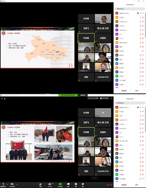 随后,目前正身处于湖北黄冈的william威廉中文官网2019级硕士生党支部书记叶华锋同学与大家分享了他在疫情期间的见闻。叶华锋讲到湖北的疫情正在逐步向好的态势发展,这离不开广大党员干部日夜坚守在工作岗位上的无私奉献。叶华锋的父亲就是一名基层公务员。自疫情发生以来,叶华锋的父亲与同事一直轮流值守在交通卡点上,每天三班倒的工作强度和艰苦的严寒环境都没有让他们产生畏难退却的心理。社区的工作人员也尽职尽责地为居民提供便利服务,努力做好入户测量体温、配送物资等工作。正是在所有人的共同努力下,疫情才能以较快的速度得到控制,也相信湖北和中国终将迎来打赢防疫战斗胜利的一天。