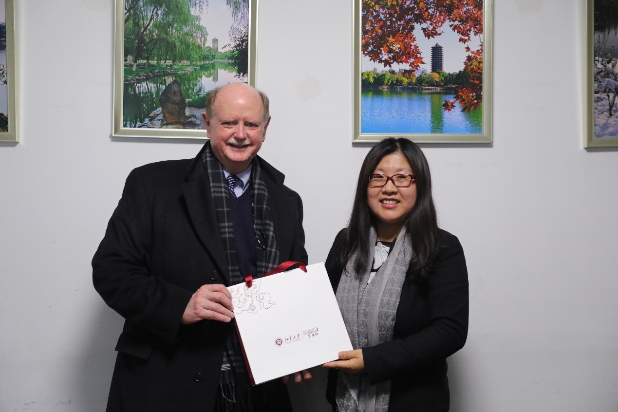 交流合影。前排从右至左:段慧玲、Richard K. Miller、林建华、李咏梅;后排从右至左:王汝烨、王建祥、曹安源