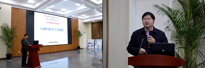 LNM主任魏宇杰研究员和LTCS常务副主任李存标教授分别代表实验室作2019年度工作报告。魏宇杰研究员从固体变形破坏的非线性力学和流体运动的非线性规律两个方面总结了LNM重要研究进展和科研成果,并介绍了重大研究项目及国家需求项目方面的申报和科研进展情况。李存标教授围绕湍流基础与应用、复杂流动、航空航天中的关键力学三个核心科研方向,梳理总结了实验室在可压缩湍流、气体力学、纳米材料、界面力学和材料力学、复杂网络、导航控制等方面取得的若干高水平成果,着重介绍了实验室在与国家重大需求结合方面取得的突出贡献。