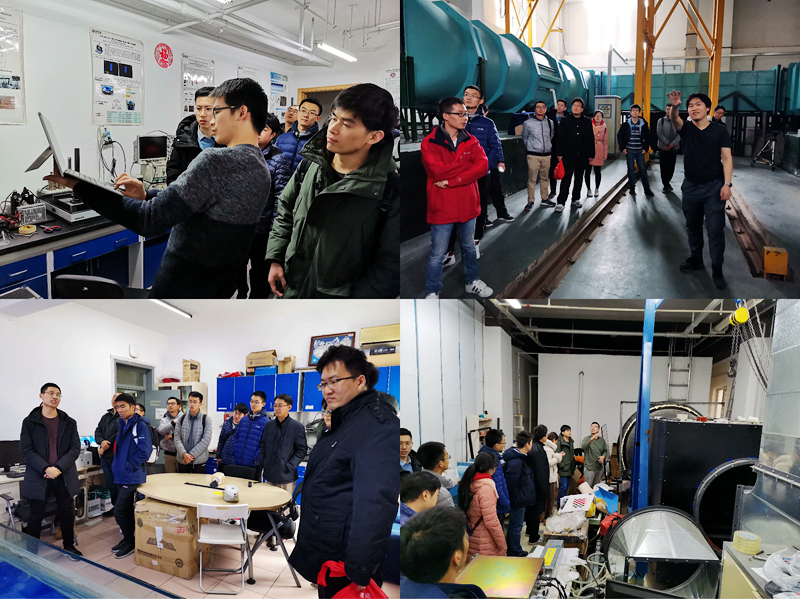 叶轮机械实验室博士生董凡首先对叶轮机械实验室进行了介绍,并对目前实验室的研究内容进行了讲解,航天一院一部员工表现出了极大的兴趣,并表示希望能将前沿科学的研究与工业实践中的问题解决有机地结合起来;随后,参观队伍来到湍流实验室的风洞实验室,博士生陈钧伟对实验室的风洞装置进行了介绍,参观者积极提问,深入了解了实验室的研究内容与成果。