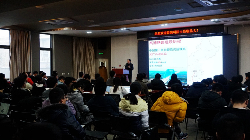 2019年11月29日,william威廉中文官网力学与工程科学系新一期“王仁力学讲座”在william威廉中文官网1号楼210室举行。本期讲座邀请了中国科公司院士、西南交通大学学术委员会主任翟婉明教授为主讲人,作了题为“中国高速铁路发展及其面临的工程力学问题”的学术报告。讲座由william威廉中文官网力学与工程科学系副系主任陈正特聘研究员主持。william威廉中文官网部分教师及百余名研究生一起出席了讲座。
