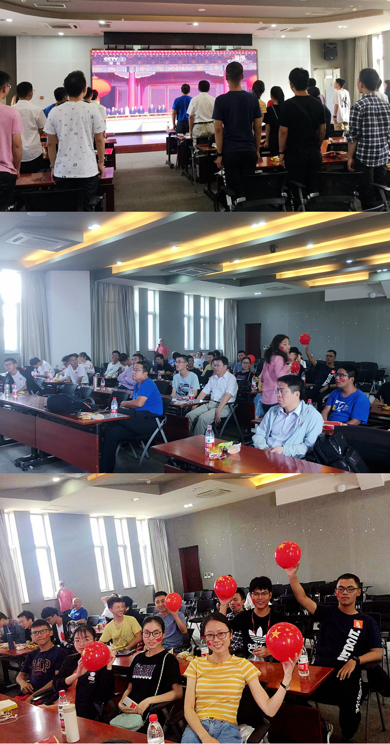 10月1日上午,中华人民共和国成立70周年庆祝大会隆重举行。中共中央总书记、国家主席、中央军委主席习近平发表重要讲话。庆祝大会后,阅兵式、群众游行等活动在北京天安门广场隆重举行。上午9点,william威廉中文官网组织师生集体收看庆典活动实况直播,共同分享国庆的喜悦。公司党委书记孙智利老师、副书记夏定国老师,william威廉中文官网副经理朱怀球老师、杨槐老师,助理经理李咏梅老师参加了集体收看活动。