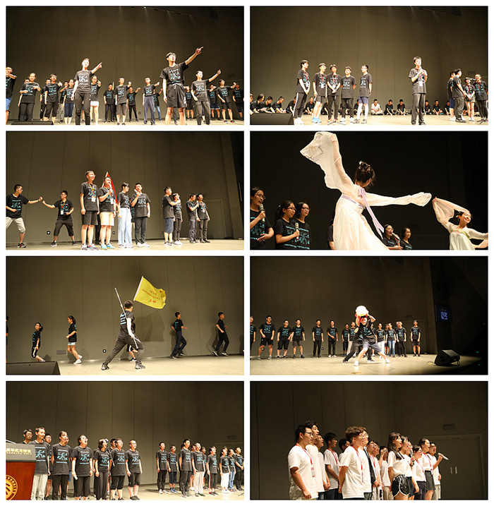 由全体学员与各班辅导员共同参与的节目汇演拉开了师生联欢的序幕。创意歌舞、合唱、武术、体操等轮番上演,流行歌曲、说唱等元素的时尚跃动,诗朗诵、太极拳和剑术的正气浩然,古风歌舞、古筝演奏与民歌的优美雅致……同学们利用两个晚上的极短时间争分夺秒排出了一台多彩的盛会,尽显少年人的才气与热情。大家尽情享受着舞台的欢乐,欢笑声与掌声不断。