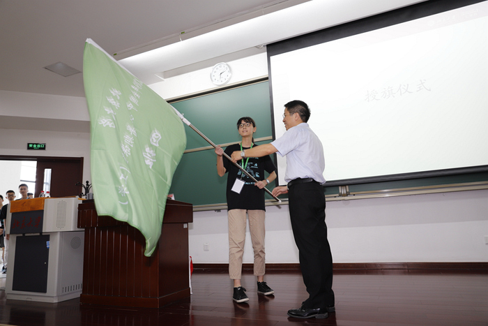 仪式最后,由朱怀球副经理为各班级授旗,伴随着学员们别出心裁、热情洋溢的自创班级口号,各班代表上台接过象征本班级的彩色旗帜,标志着暑期课堂的正式启动。