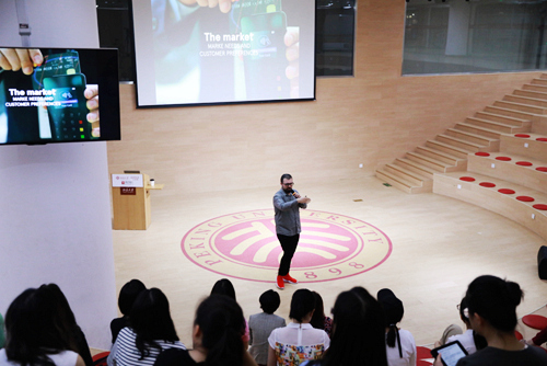德稻品牌战略大师白福瑞(Florin Baeriswyl)国际品牌顾问公司DAI的创始人,曾获具有工业设计界“奥斯卡”之称的红点至尊奖,此次受邀来北大,以“品牌塑造的重要性”为题,从品牌打造的求真(truth)、求质(quality)、始终如一的三个角度讲授了“品牌的概念”、“创新的意义”、“实践的操作案例”三部分的内容。在谈及品牌的重要性时,大师以“品牌树”的视频进行讲授,激发起了同学们的兴趣。白福瑞大师表示,品牌就像是企业的树根,孕育了企业的文化,使众人从中受益。如果树根是健康的,自然就会结出丰硕的果实,这就是制定品牌战略的重要性。