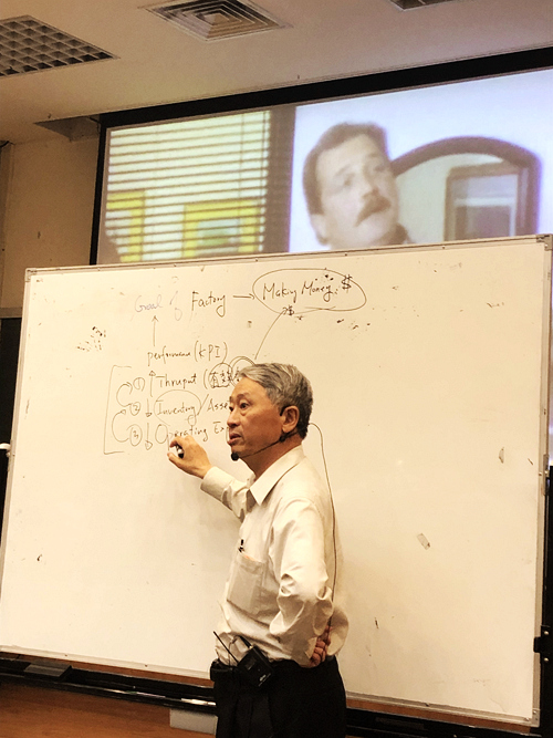 当天下午,台湾清华邀请北大师生一同聆听了工业工程和工程管理系特聘教授林则孟先生的《供应链管理》课程。此次课程主要讲解TOC限制理论,为了让同学们更好地理解,林教授用一段典型视频作为开场,将该理论的含义、要素以及各要素之间的关系清晰地展示给同学们,并做了详细分析。随后,同学分组进行讨论,既加深了彼此的了解,又体会到两岸员工在思路上的差异。别开生面的上课形式以及深入浅出的循循诱导,给同学们留下了深刻的印象。