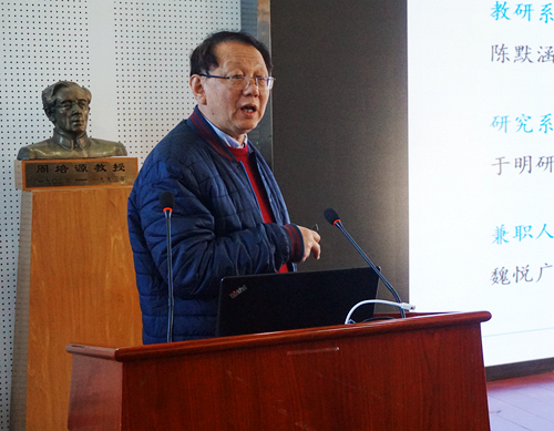 白树林教授汇报了高能量密度物理数值模拟教育部重点实验室2018年度工作总结和2019年工作计划,并汇报了实验室在2018年教育部重点实验室评估结果。他在报告中还提出了两点实验室未来的发展设想,希望实验室提高承担国防项目教师数、能够利用北大军民融合平台深度参与国防科研、扩大对外合作范围。