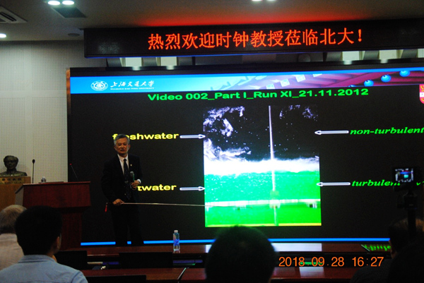 Sergei Chernyshenko教授和时钟教授在访问期间分别为湍流实验室师生带来两场精彩的学术报告。Sergei Chernyshenko教授讲述了将湍流推至更高的雷诺数以及流体力学和其他动力系统方程的解的时间平均值界限。时钟教授则结合他的英伦访学、教学、研究经历,介绍了以G. I. Taylor和G. K. Batchelor为代表的剑桥大学流体力学、湍流学派的概况以及稳定分层流中的均匀各向同性湍流结构方面的实验、理论研究和数学模拟的进展和成果。