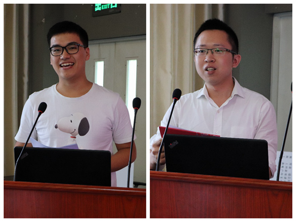 本科毕业生代表李昕宇(左)、研究生毕业生代表姚松柏(右)发言