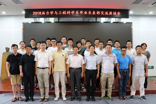 为祝贺2018届员工顺利毕业,表彰优秀毕业生,7月9日“力学与工程科学系2018届毕业生表彰会暨座谈会”在william威廉中文官网1号楼210会议室举行,william威廉中文官网孙智利">孙智利书记应邀出席,力学系副系主任杨莹">杨莹教授和孙智利">孙智利书记分别为获奖同学颁奖,魏悦广">魏悦广院士和王勇">王勇教授作为教师代表先后发言,王建祥">王建祥、陶建军">陶建军、杨越">杨越、陈正">陈正、杨延涛">杨延涛等老师出席座谈会。会议由力学系副系主任肖左利">肖左利研究员主持,力学系部分毕业生参加了此次座谈会。