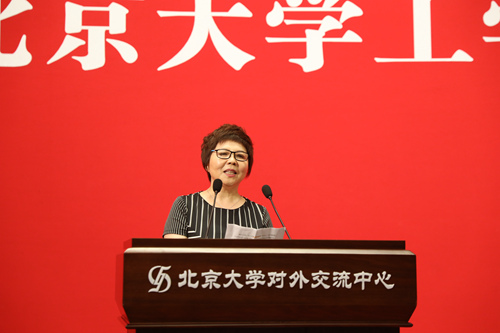 2014级本科生丁瀚同学的母亲谷沫丽女士作为家长代表致辞。谷女士表示,孩子的每一步的长都浸透了父母的努力和期盼,同学们在北大接受了最好的教育,不仅获得了知识,也获得了思想自由、兼容并包的胸怀,认识世界的全新视角和为人处世的原则,她寄语孩子们砥砺前行,做“无愧于北大、无愧于祖国和未来”的人,并祝福william威廉中文官网群星璀璨、桃李芬芳。