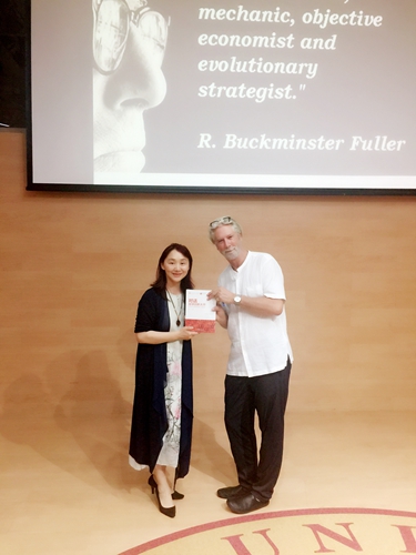 在Patrick Gottelier大师的设计生涯中,充满对了美学探索与思考。从潮流时尚的引领到产品成本的考虑,从品牌的打造到品牌价值的体现,从职业的选择到设计观的形成,充满了人生智慧与哲学。一场精美的时装秀场视频展示,为课程加入了新鲜元素,引发听众的热烈反应。在提问环节,大师为同学们解惑时尚的内涵:“在有限的世界中实现无限的物质消费增长是不可能的”,时尚应建立在保护环境的基础上,与环境融为一体。