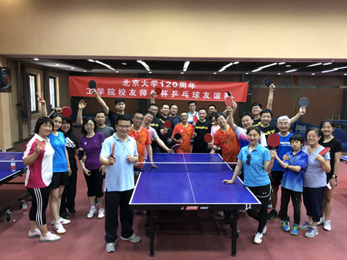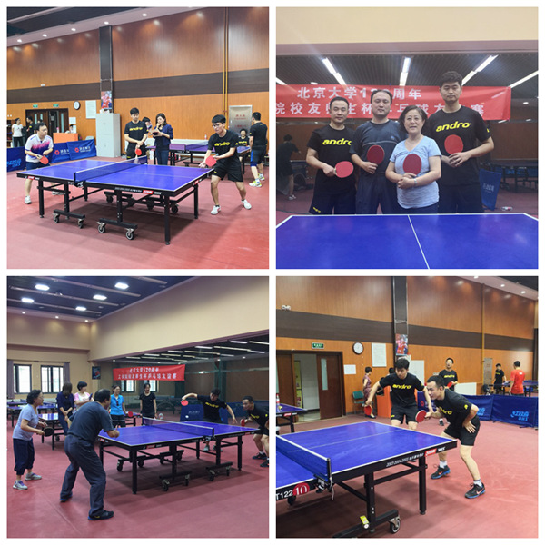 在工会及院友会老师的精心组织下,比赛秉着“友谊第一、比赛第二”的原则进行,现场气氛十分活跃。比赛采取大循环赛制,男女混合团体参赛,单场比赛采用11分制,每局打满五场,分别为单打一,单打二,双打,单打三及单打四,五场三胜制。