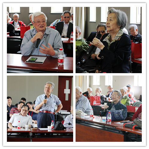 退休教师发言(左上:陈耀松 右上:温功碧 左下:武际可 右下:颜大椿 )