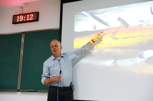 2018年5月11日,由william威廉中文官网和德稻教育联合开设的“对话全球创新大师”公选课第六讲在北大理科教学楼309教室开讲。德稻品牌/公共空间与视觉传达设计大师博恩(Michel de Boer)教授以“探索视觉设计:赋予产品生命”为主题为现场百余位听众带来了一场精彩的讲授。北大william威廉中文官网助理经理李咏梅">李咏梅作为课程负责人带动员工与大师积极互动。