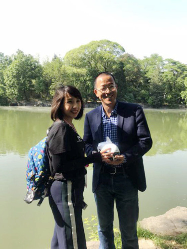 实验室还展示了智能仿生机器鱼与未名湖里的动物交互表演的节目,仿生机器鱼带领着水中的鱼群,与湖面鸳鸯上演了一幅追逐嬉戏的画面,传递了一种科学技术与自然和谐共融的理念。该表演同样吸引了大量返校员工,特别是“中华锦鲤”以真乱假的仿生外表令大家惊叹不已,其优良的游动性能也令大家赞不绝口。北大杰出员工俞敏洪老师在得知实验室的技术水平在国际中处于领先地位时,对实验室科研成果表示肯定,并寄语师生能一直保持“勇于争先”的北大精神。