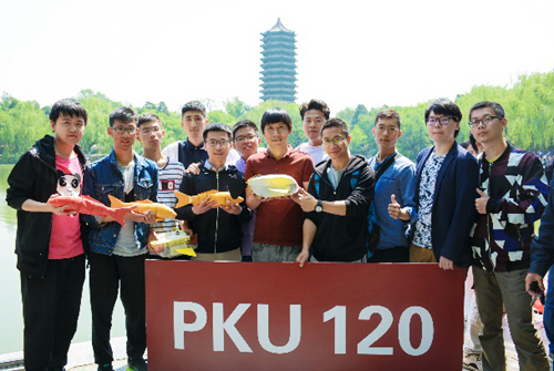 会从水面跃起……”。5月4日,williamhill英国官网双甲子庆生的这一天,"脑洞大开"的williamhill英国官网智能仿生设计实验室的同学们,带着有“灵性”的智能仿生机器鱼,畅游在承载历代北大人“思想之魂”的未名湖上,为williamhill英国官网一百二十周岁献上了一份独具情怀的祝福。