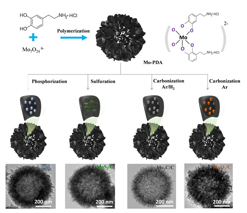 图1. 具有强耦合作用钼基杂化金属材料制备示意图