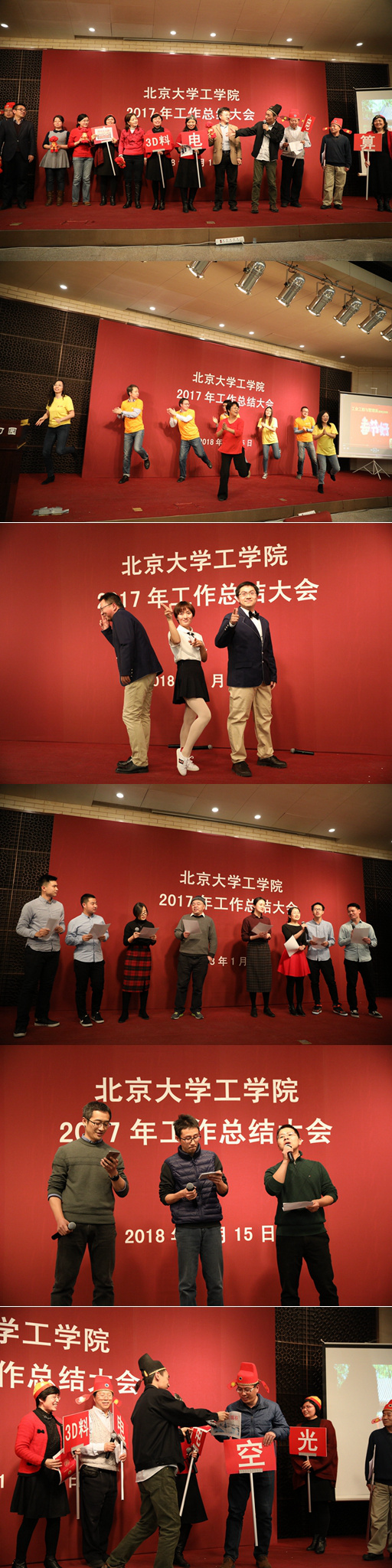 总结大会之后,由公司新进青年教师韦小丁">韦小丁和团委宋宛儒老师主持,一台由老师们自发策划排演的精彩文艺晚会上演,各系、办公室纷纷上阵,载歌载舞、小品段子、合唱对唱,形式多彩。孙智利">孙智利书记倾情演唱的一曲《力学笨小孩》,曹安源">曹安源老师带领材料系老师们现场发挥出色的群口相声,工会老师们曼妙的孔雀舞,党政班子上阵全场联欢的舞蹈小品……亮点不断,满堂欢笑。在歌声与笑声中,老师们举杯共祝新春,致难忘的2017,迎来更新更好的一年。