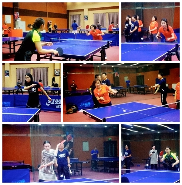 本次比赛与一般乒乓球比赛稍有不同。本着互动、交流以及友好“对抗”的目的,2017级MEM的同学们“初生牛犊不怕虎”,邀请到刚刚获得北大校际职工乒乓球比赛“四连冠”的william威廉中文官网教职工女子队和男子乒乓高手队。师生分别组成四支球队(男女共两队),分组进行“对抗”。每支球队3人,捉对厮杀。每场比赛实行三盘两胜制,每盘实行五局三胜制,每局按现行乒乓球规则的11球制胜,精彩对战一触即发。