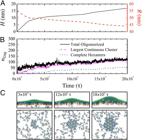 近日,william威廉中文官网生物医学工程系陈匡时">陈匡时课题组和美国芝加哥大学等多所研究机构的科学家合作,运用计算机模拟HIV病毒在分子水平下宿主细胞膜上组装的机制。该研究成果已发表于美国国家科公司院报 PNAS (链接:http://www.pnas.org/content/early/2017/10/31/1706600114.long)。