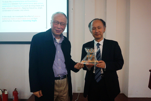袁明武教授向Yoshimura教授颁发“王仁力学讲座”纪念奖牌